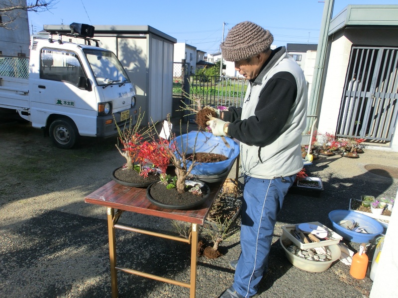 昨日までの寒波がうそみたいないい天気の今日、お正月用寄せ植えを作りました。