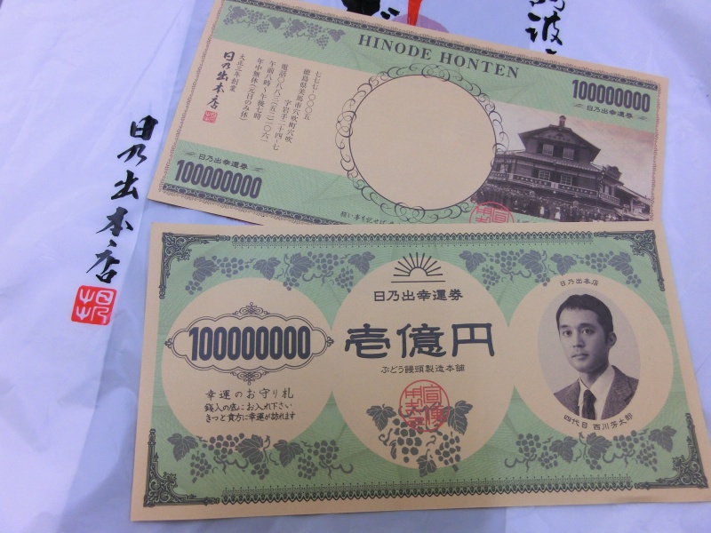 箱の中に、壱億円の幸運券が、幸運のお守り札として入っていました。