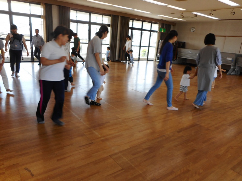 半分は初めての参加組で親子とも初め、緊張気味のようでしたが、アンパンマンなどの曲が流れて先生が手遊びをしたり、さあ思いっきり走ってみよう ! と声掛けたら元気な男の子など大喜びで走り出し !