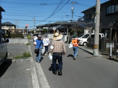 午前9時30分に木太コミュニティセンターに簡易除去活動員と地区ボランティアの人あわせて30人ほど集まり、地区内の違反広告を撤去に向かいました。