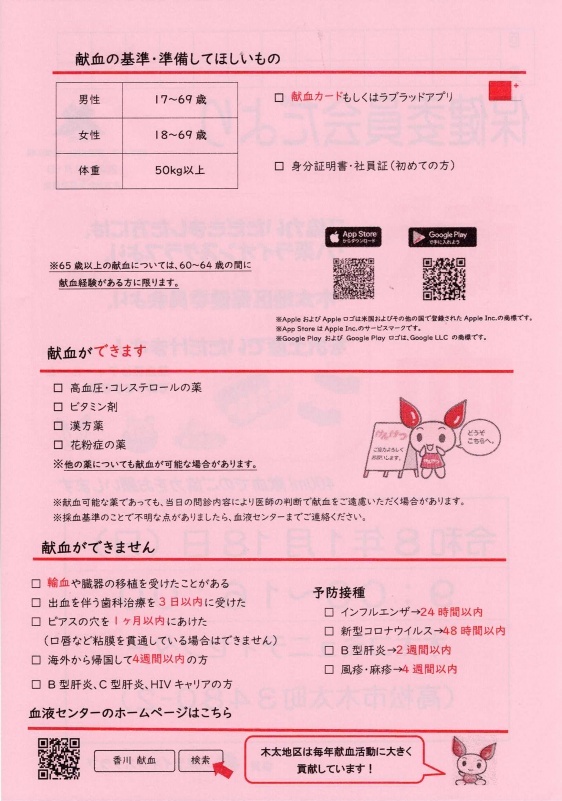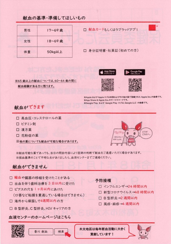 8月木太地区コミュニティからのお知らせ